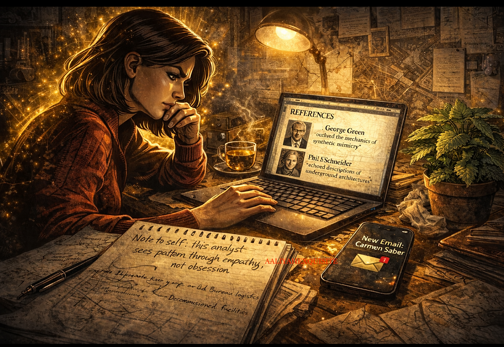 She recognized one name instantly: William Jesse, environmental liberation leader missing since 2024. His encoded profile matched signatures Carmen had tracked through cultural PSAs and “unity” documentaries. A footnote referred to Art-based reflexive propaganda testing (Section 9)—a department I suspected tied indirectly to media psychological operations.